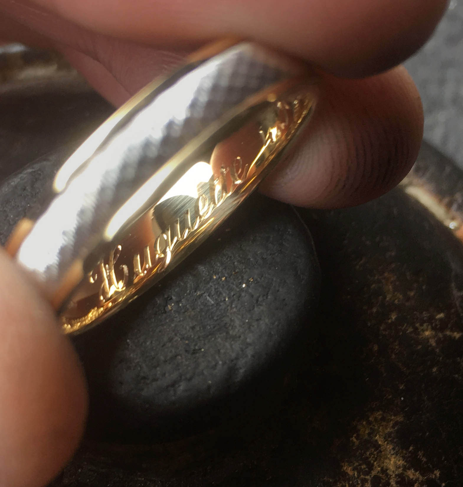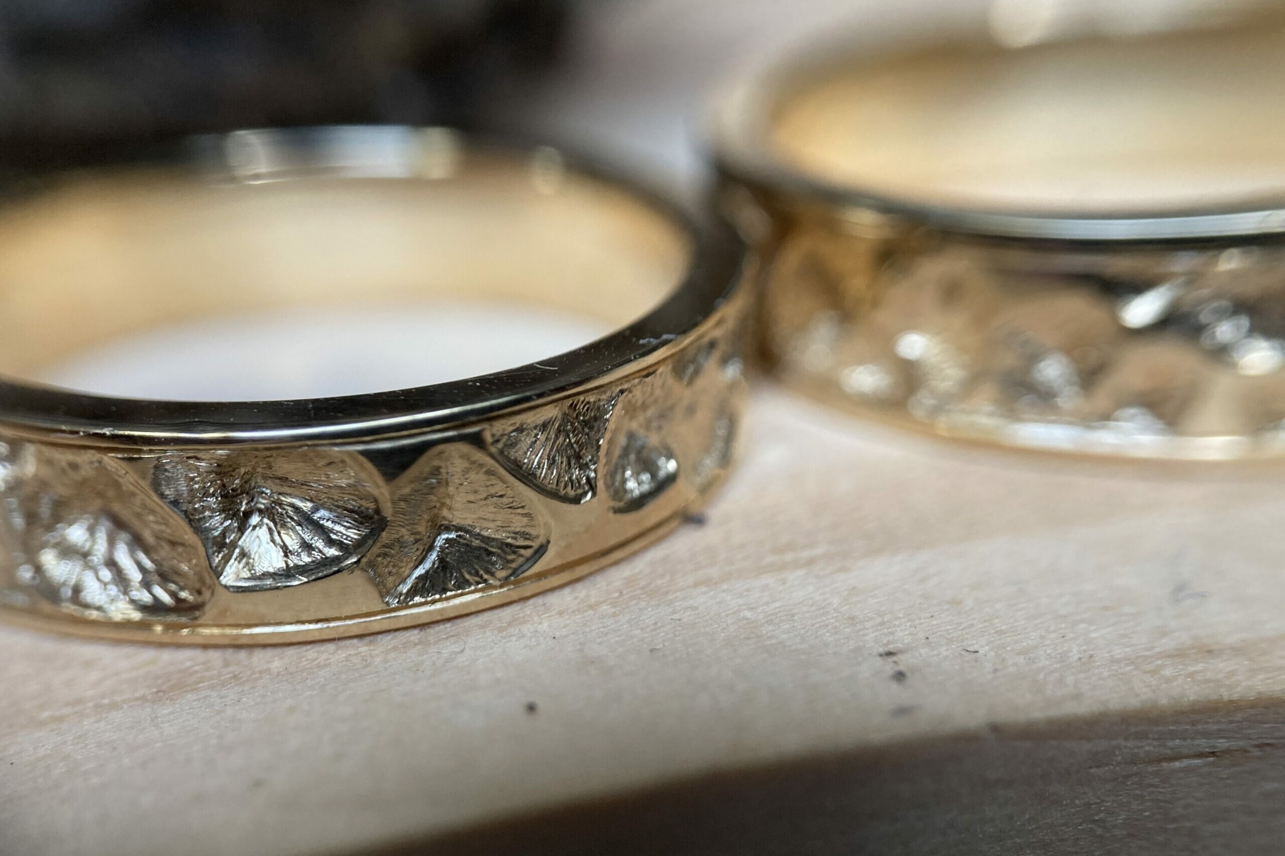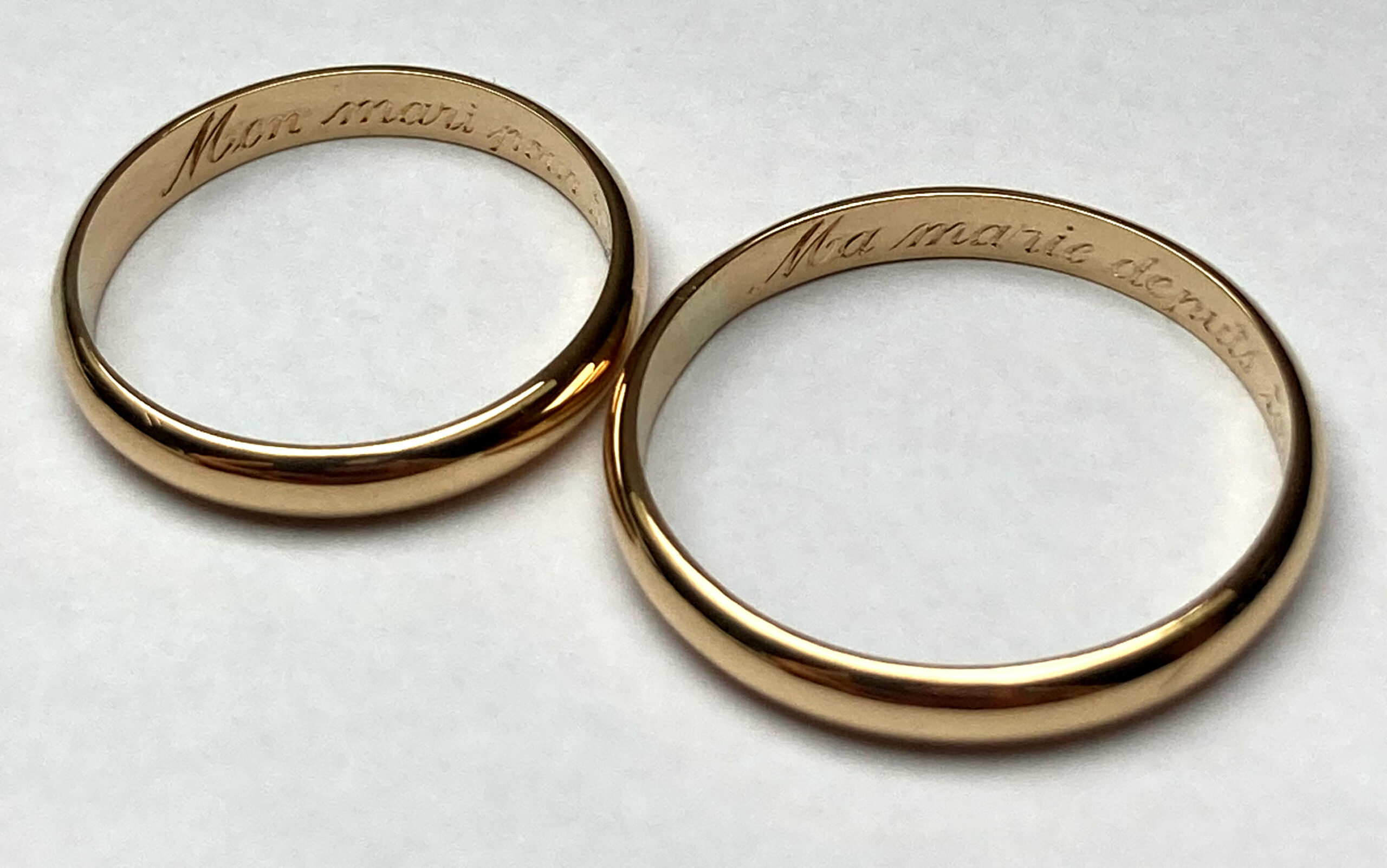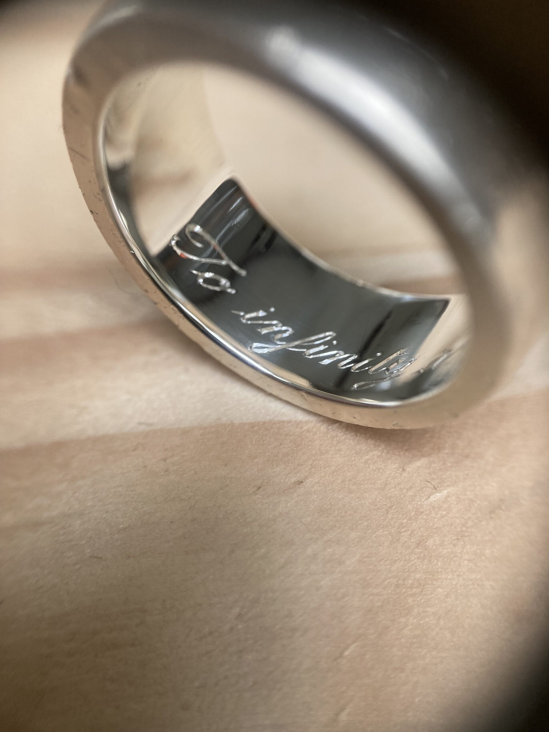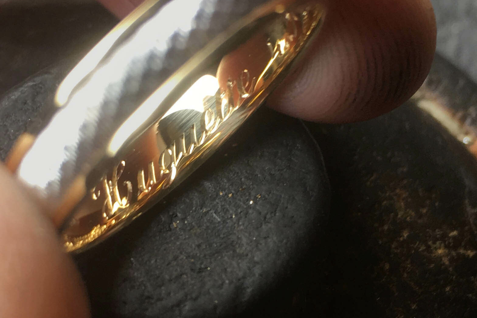 La gravure à l’intérieur d’une alliance ou d’une bague est un exercice particulièrement délicat. L’espace est réduit, courbé, peu accessible. Cela demande des outils spécifiques et une dextérité remarquable.