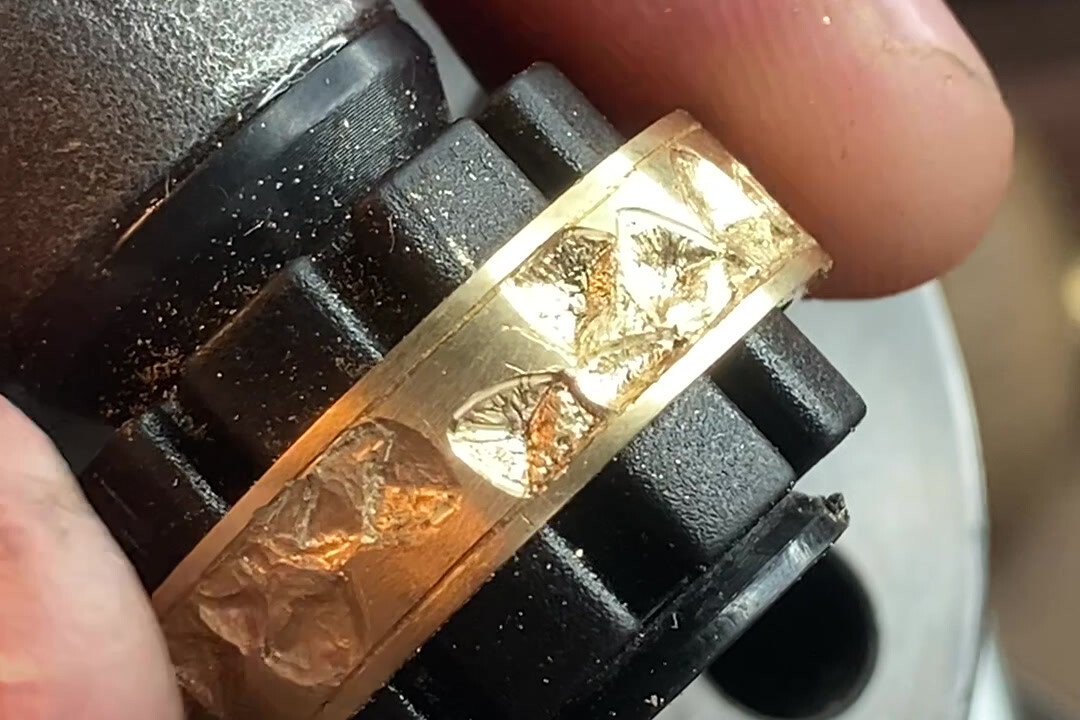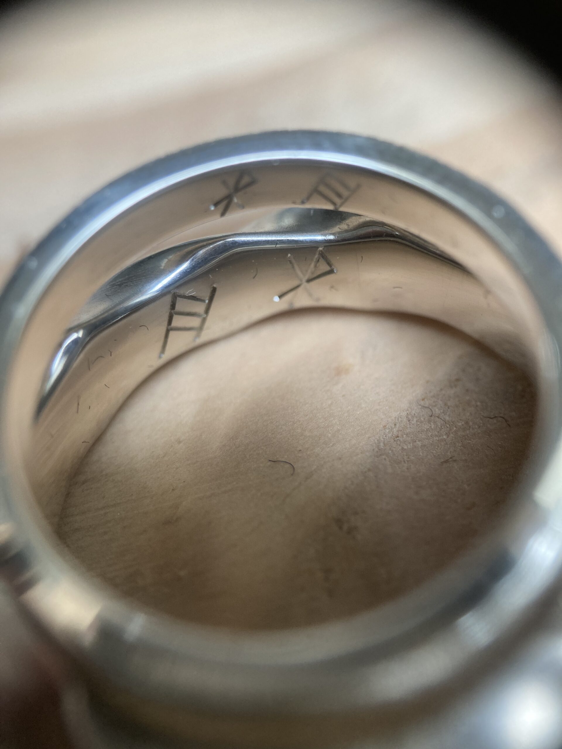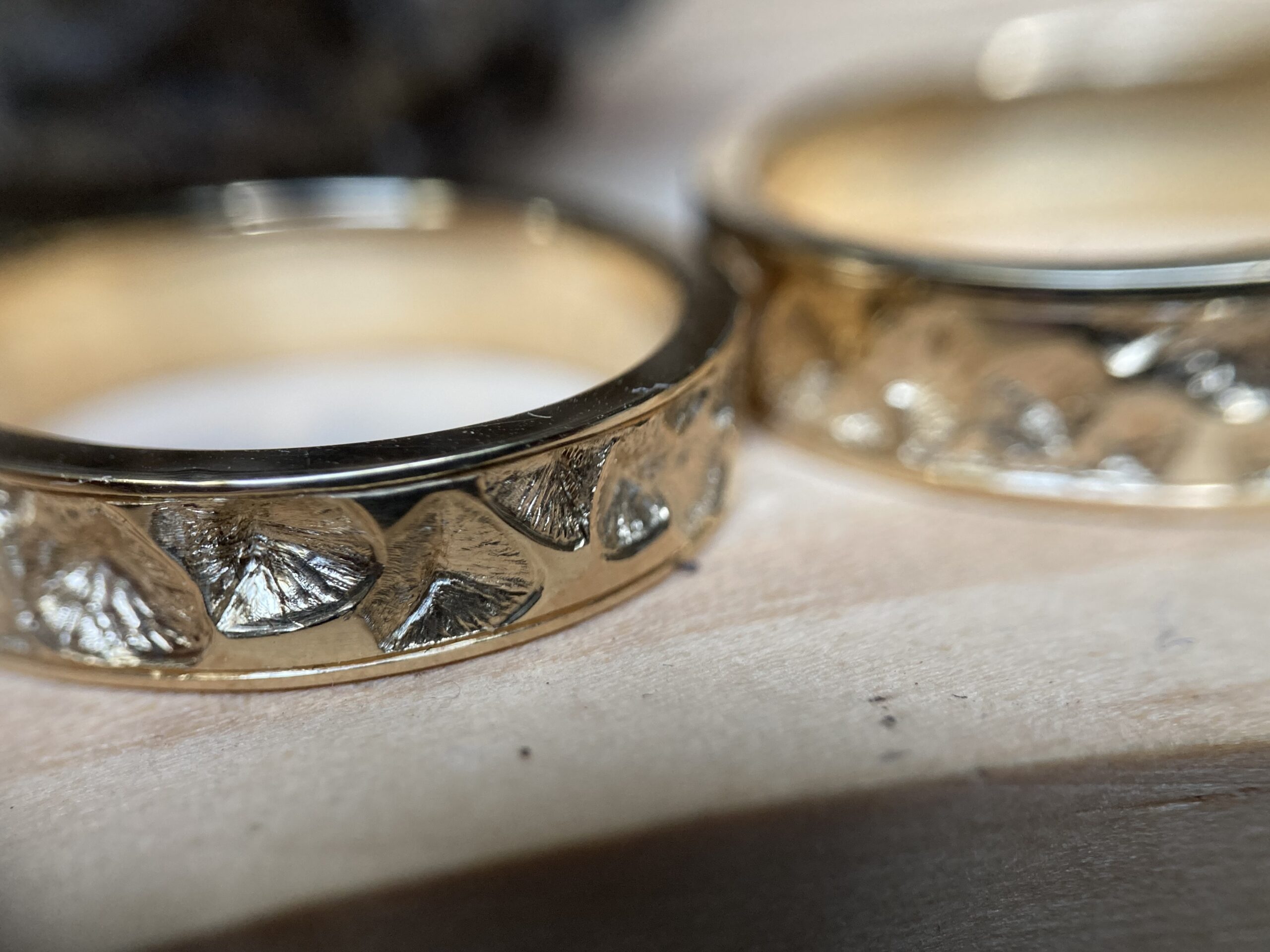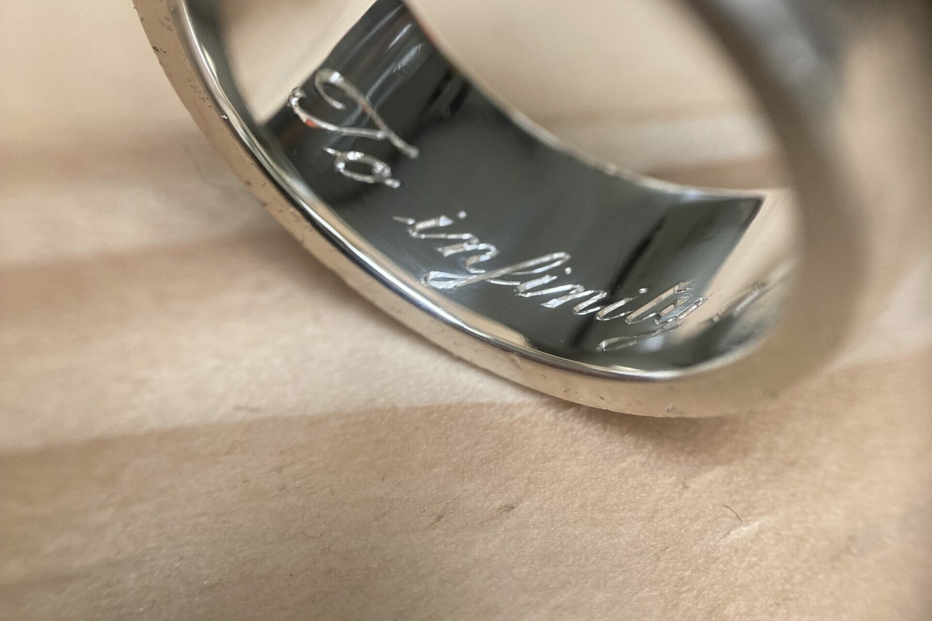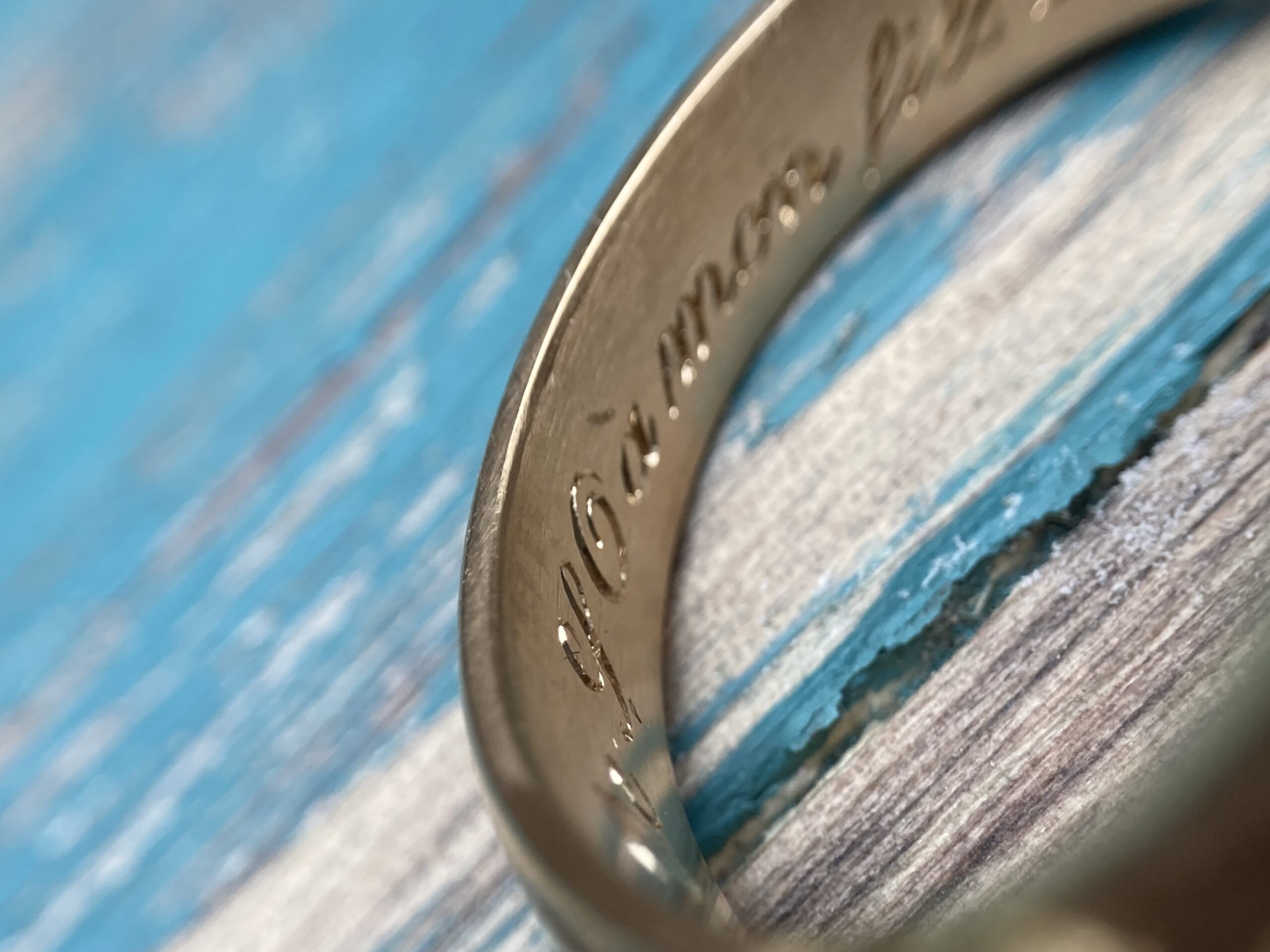 La gravure à l’intérieur d’une alliance ou d’une bague est un exercice particulièrement délicat. L’espace est réduit, courbé, peu accessible. Cela demande des outils spécifiques et une dextérité remarquable.
