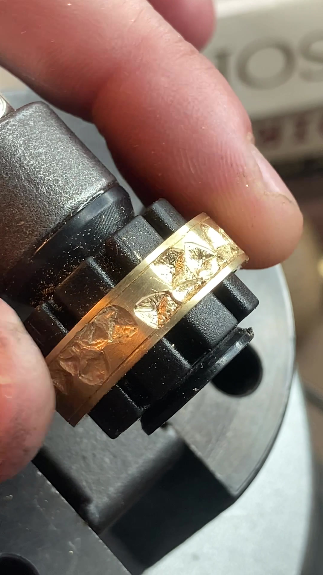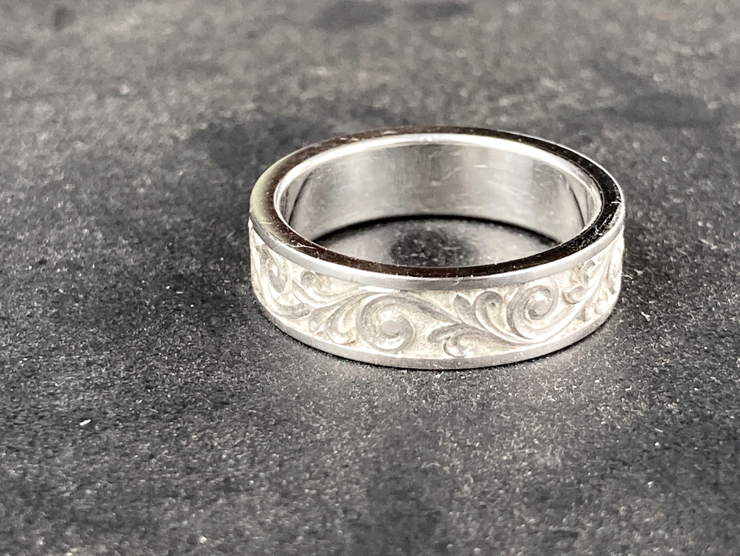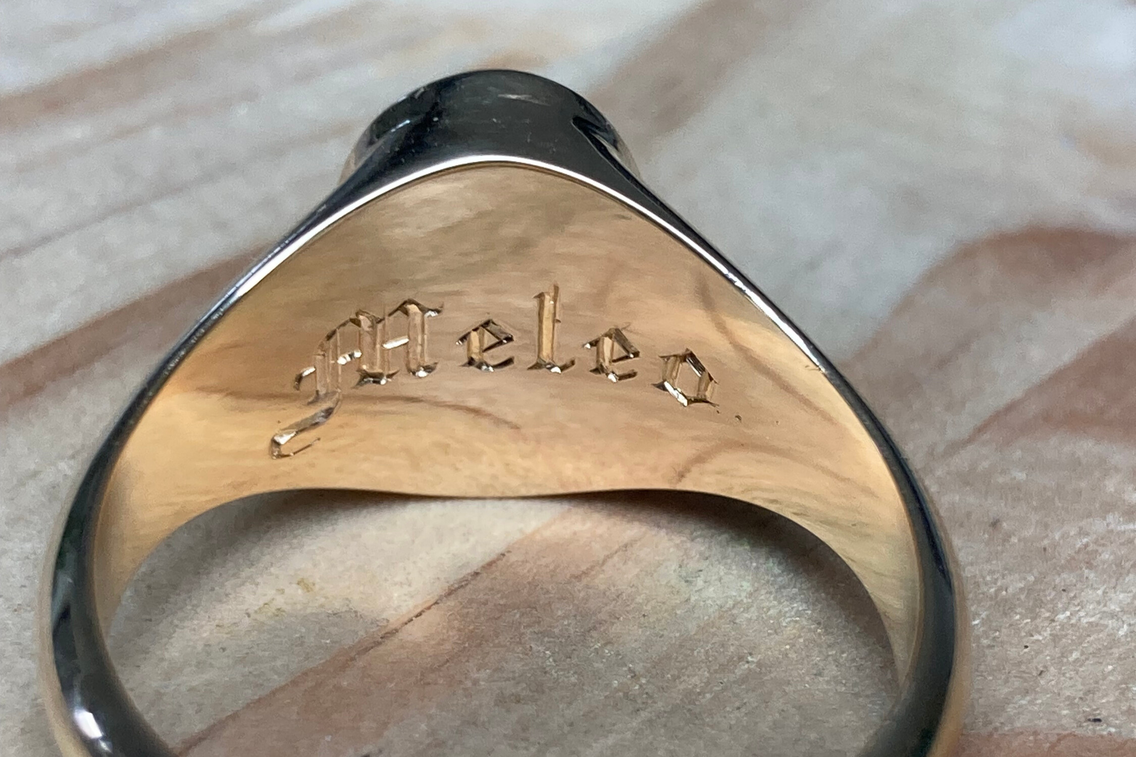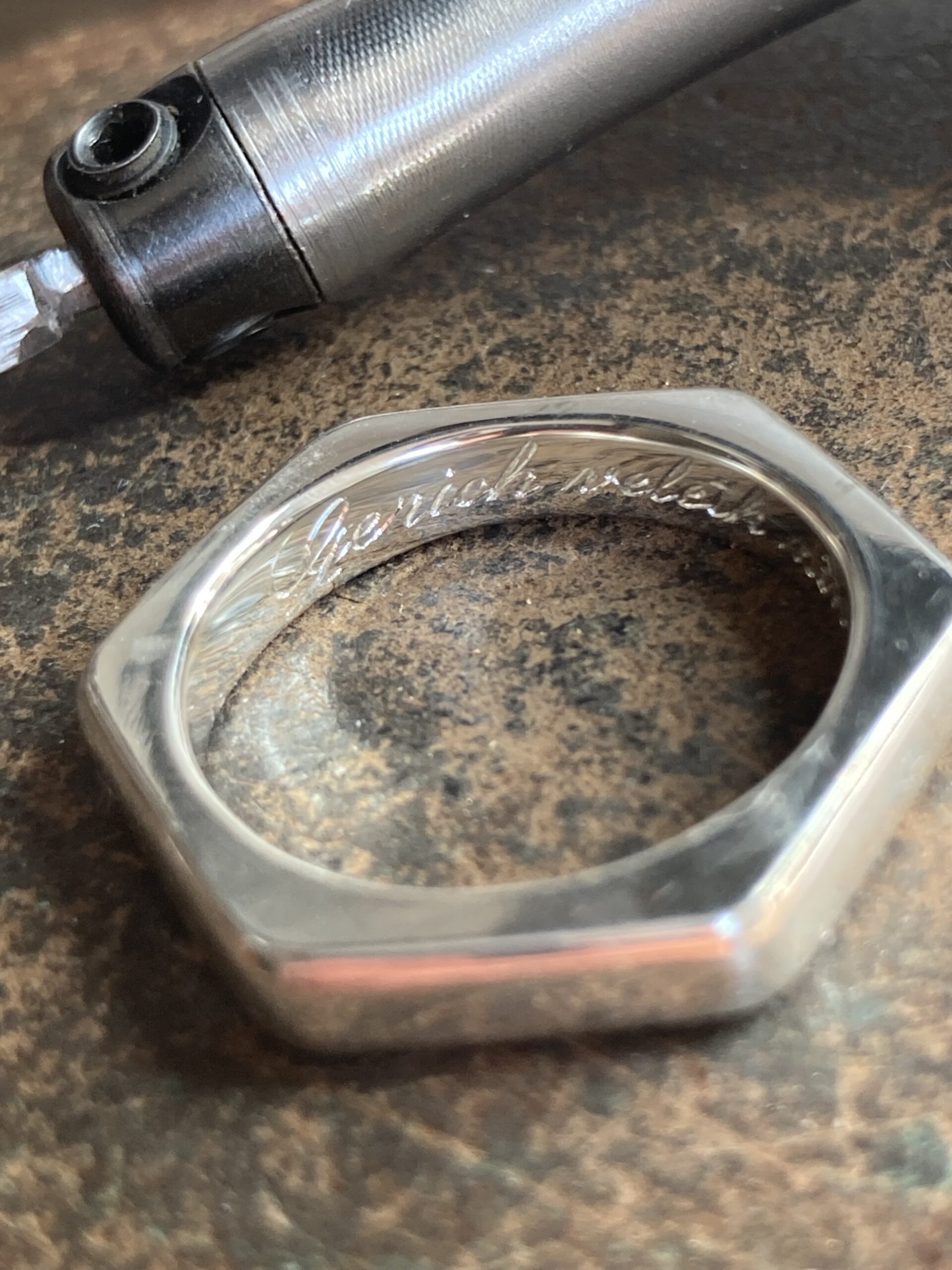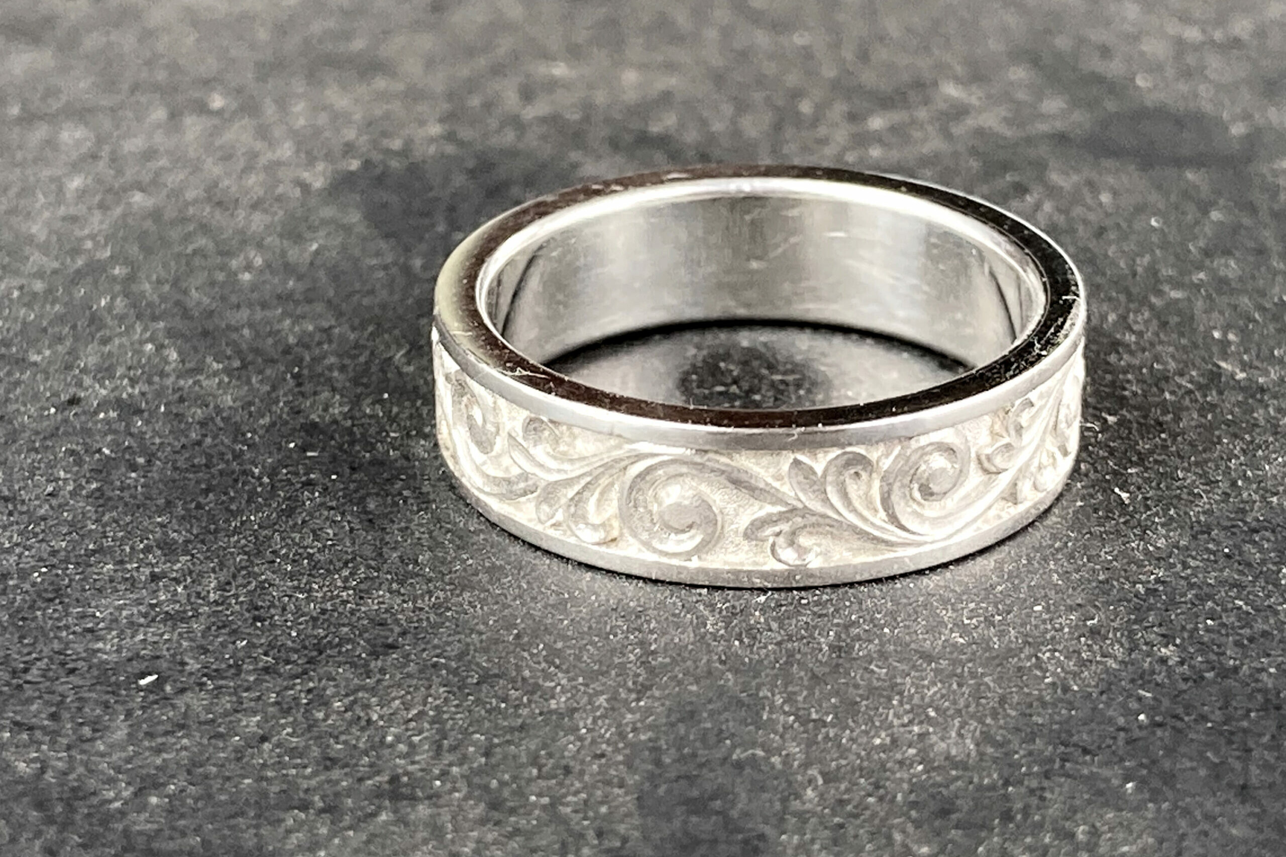 La gravure à l’intérieur d’une alliance ou d’une bague est un exercice particulièrement délicat. L’espace est réduit, courbé, peu accessible. Cela demande des outils spécifiques et une dextérité remarquable.