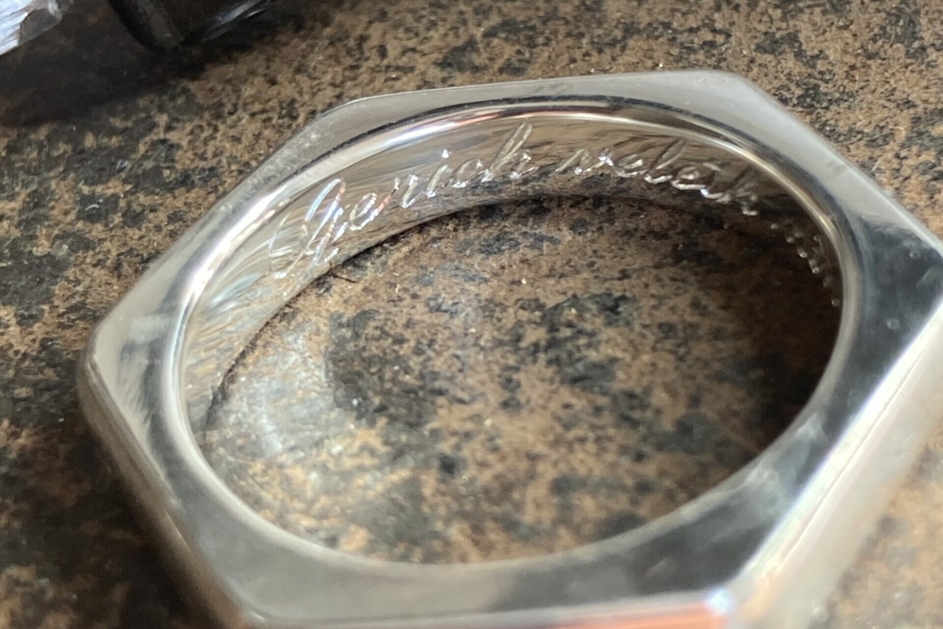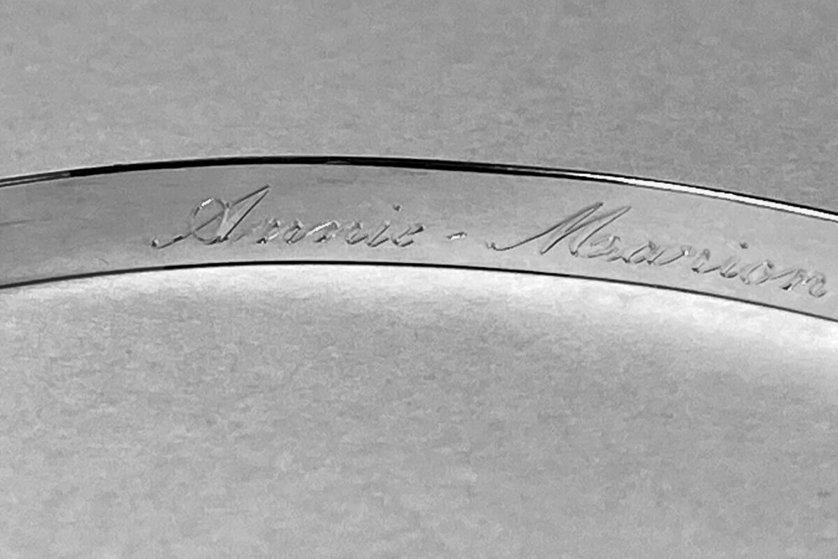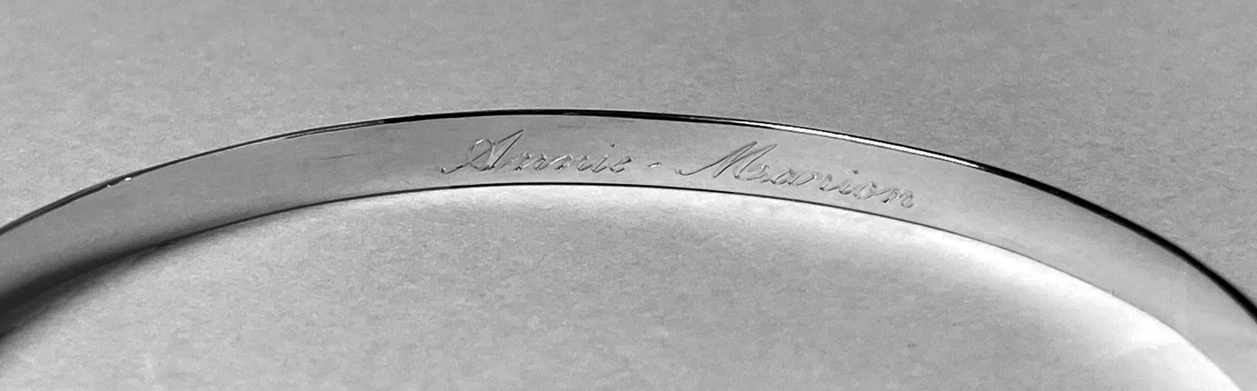 Dans la gravure calligraphique, le fond compte autant que la forme. Ce n’est pas simplement « écrire » sur un bijou, c’est composer avec les pleins et les déliés, jouer avec les empattements, créer un rythme visuel qui rend les mots beaux autant que significatifs.
