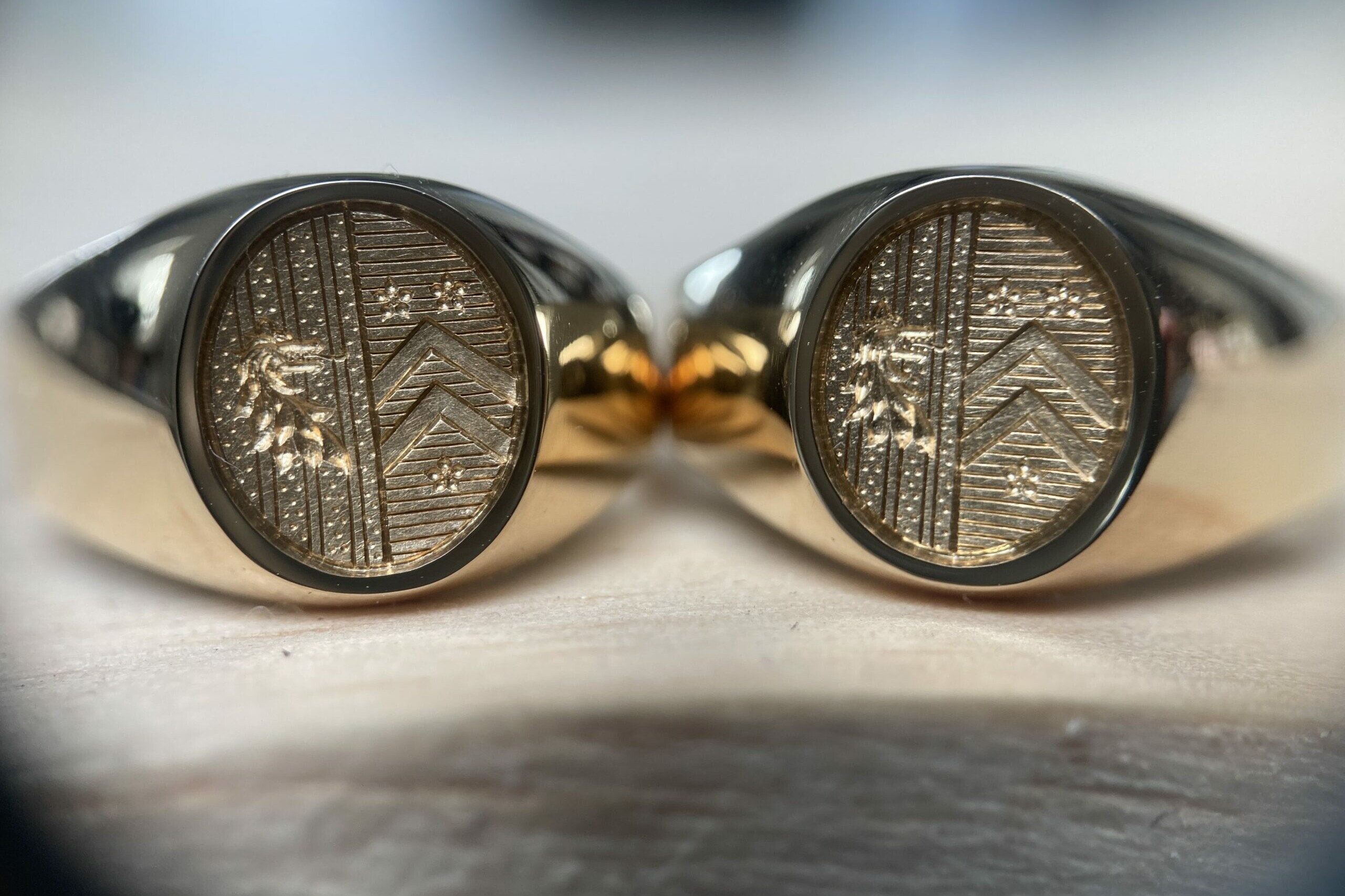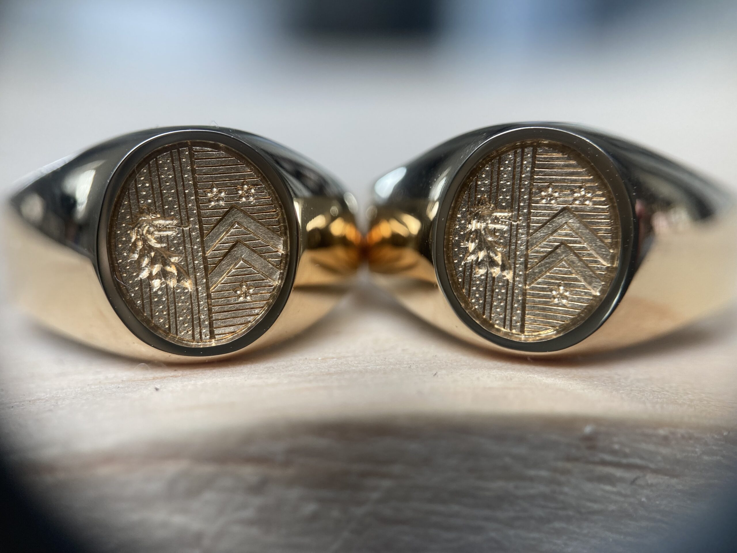 La gravure héraldique trouve naturellement sa place sur les chevalières, symboles de transmission familiale par excellence. Mais elle s’exprime aussi magnifiquement sur les médailles, pendentifs, et même certaines bagues de prestige.