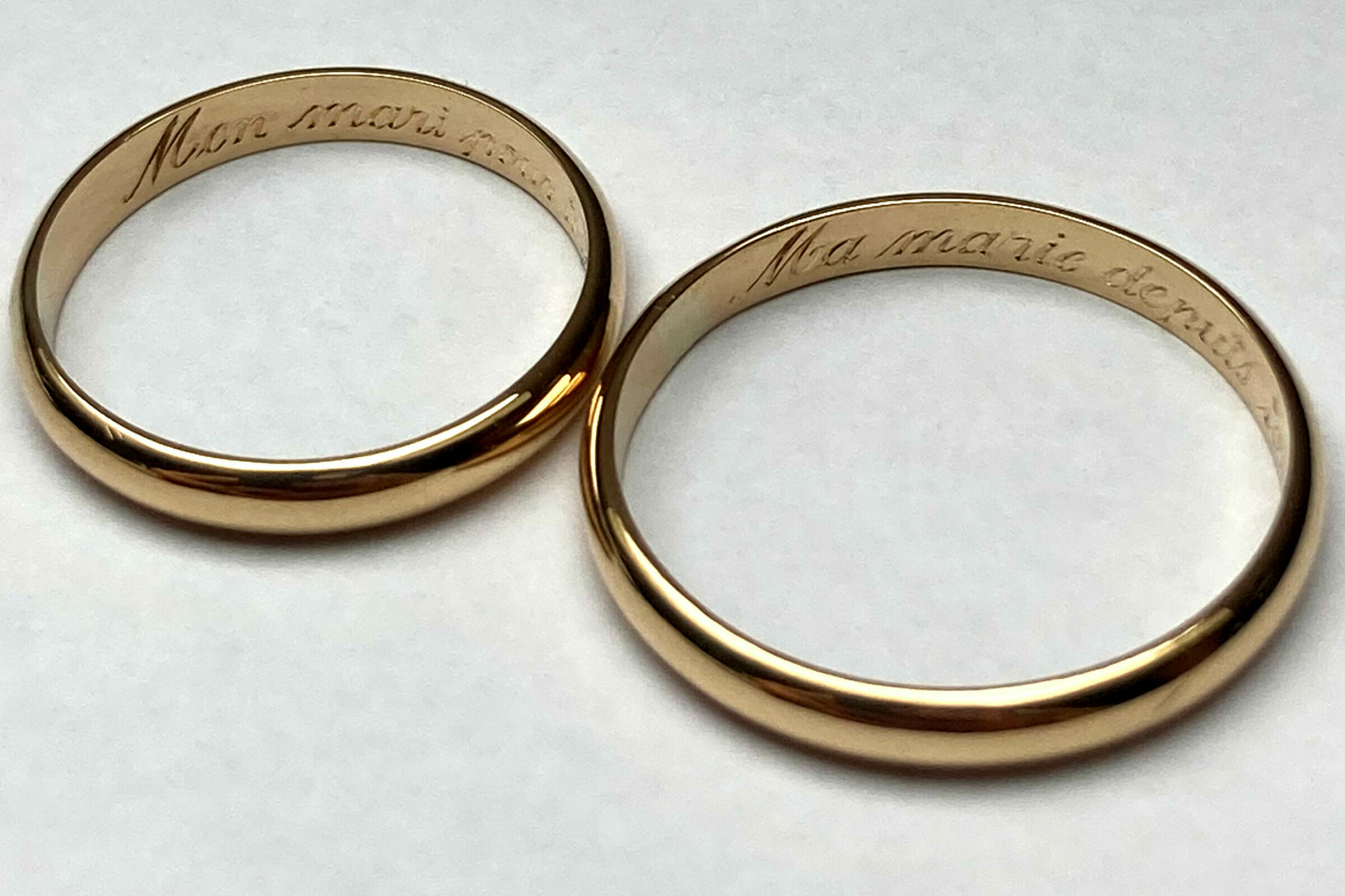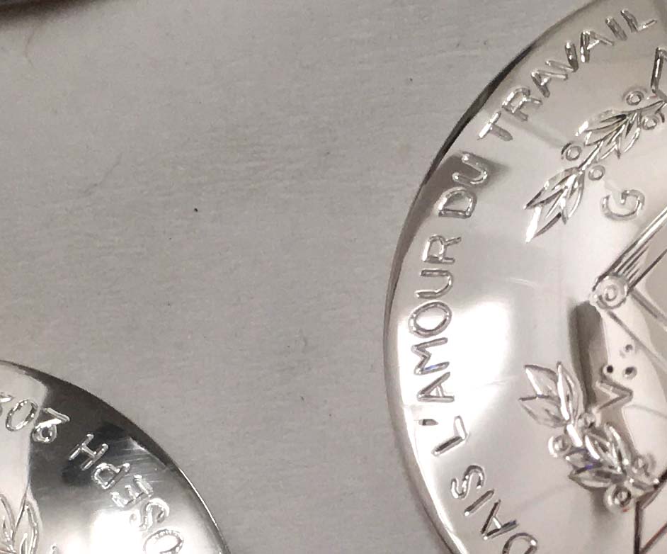 Le rendu final dépend aussi du métal : l’or offre une gravure douce et chaleureuse, l’argent un contraste plus marqué, le platine une finesse extrême.